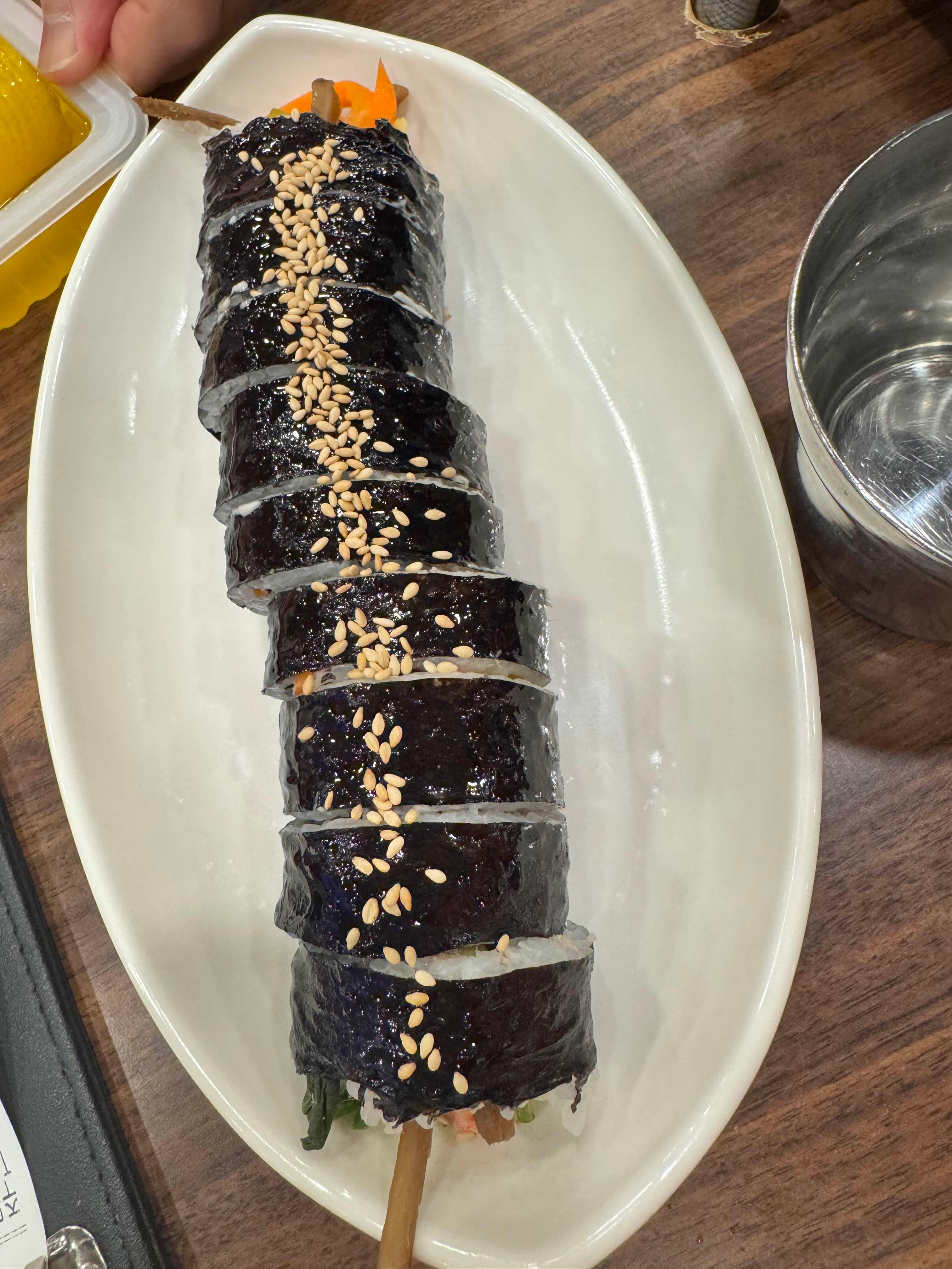 김밥 : 떡볶이 소스와 라면이 어우러져 깊은 맛을 느낄 수 있음