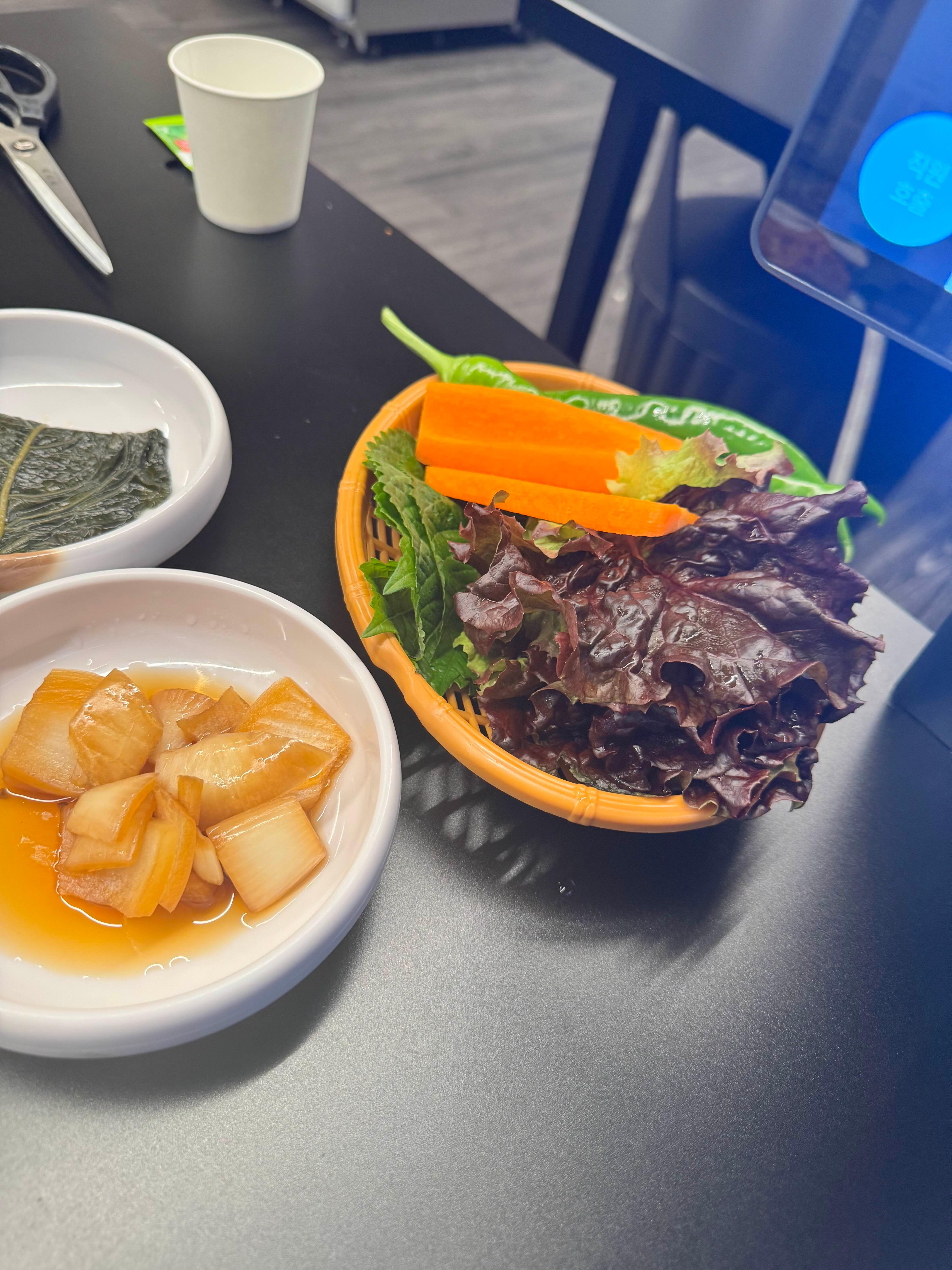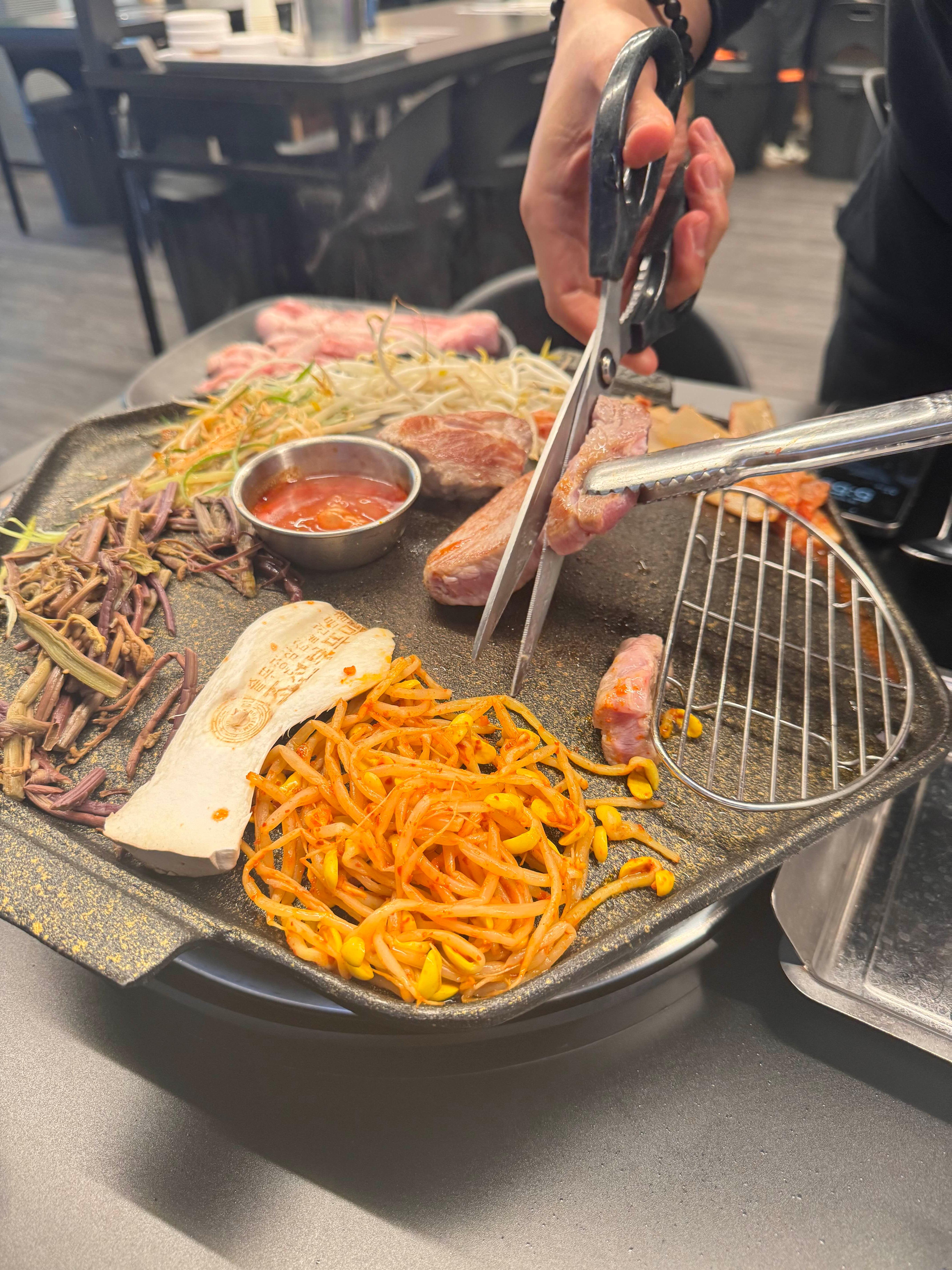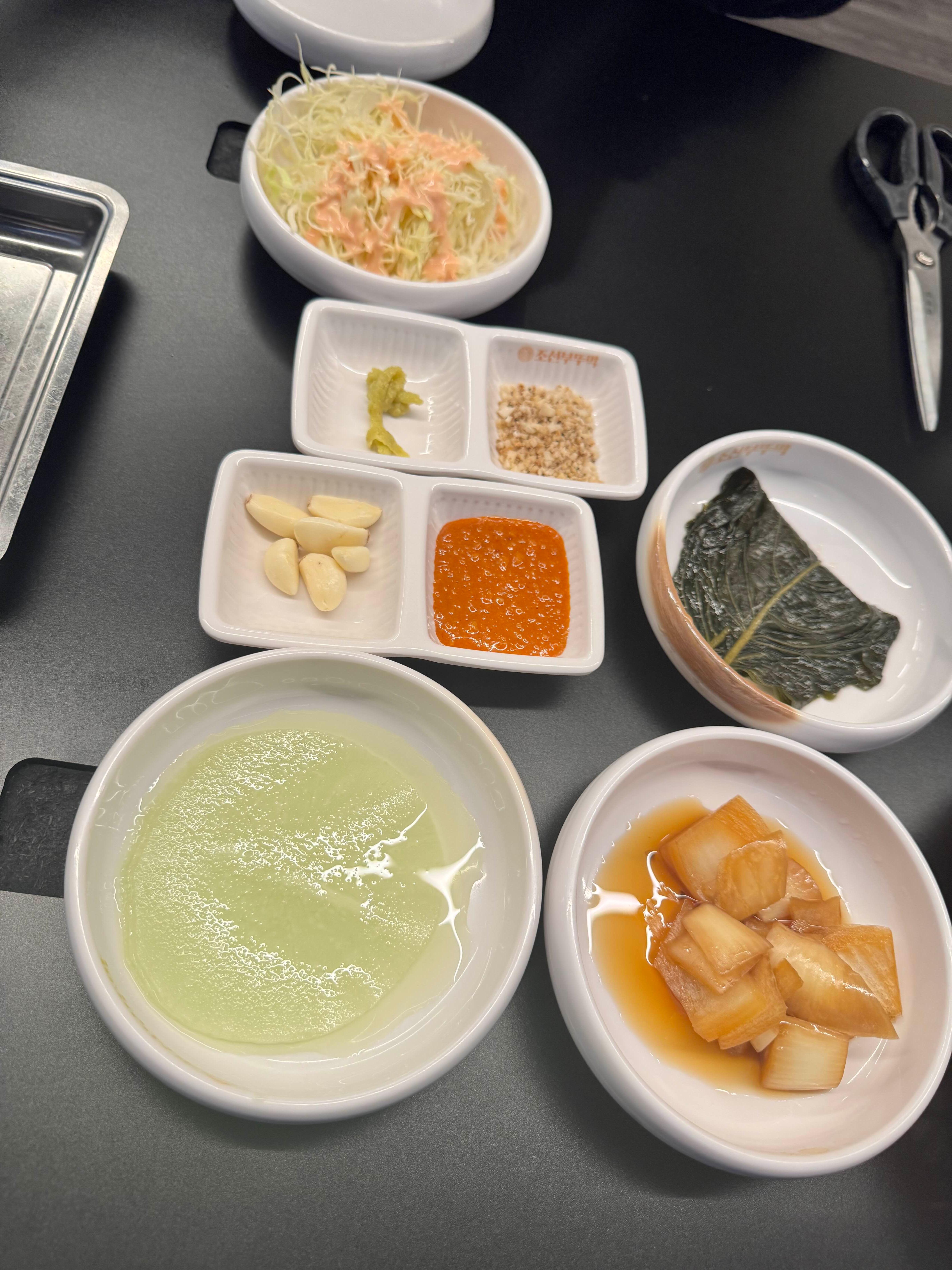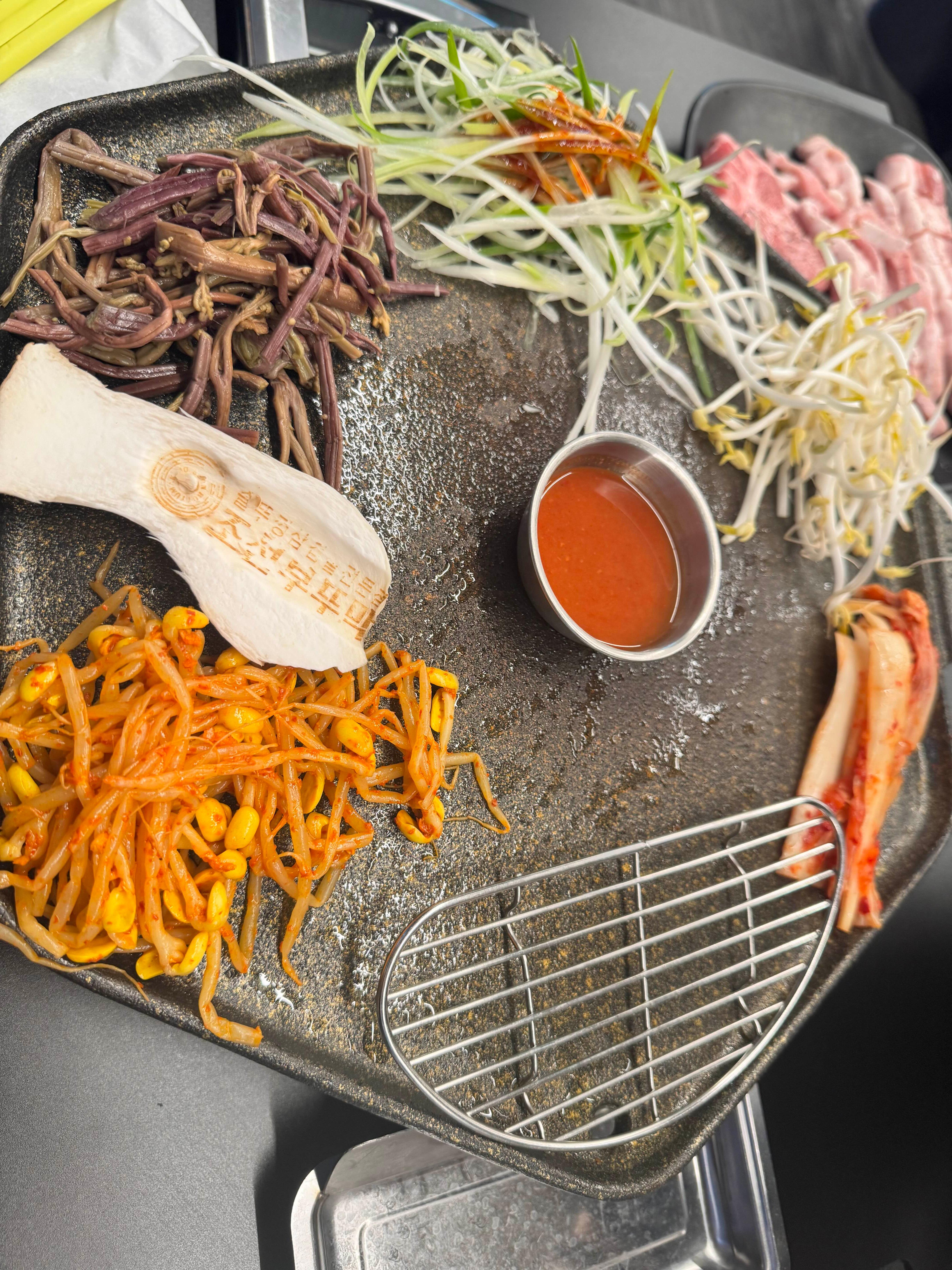 고기 맛이 진짜 예술이었어요. 삼겹살은 육즙이 가득하고 부드러웠고, 차돌박이는 고소한 풍미가 끝내줬어요. 불판에 구운 나물과 함께 먹으니까 풍미가 배가 되더라고요. 같이 나오는 소스도 잘 어울려서 계속 손이 갔어요!